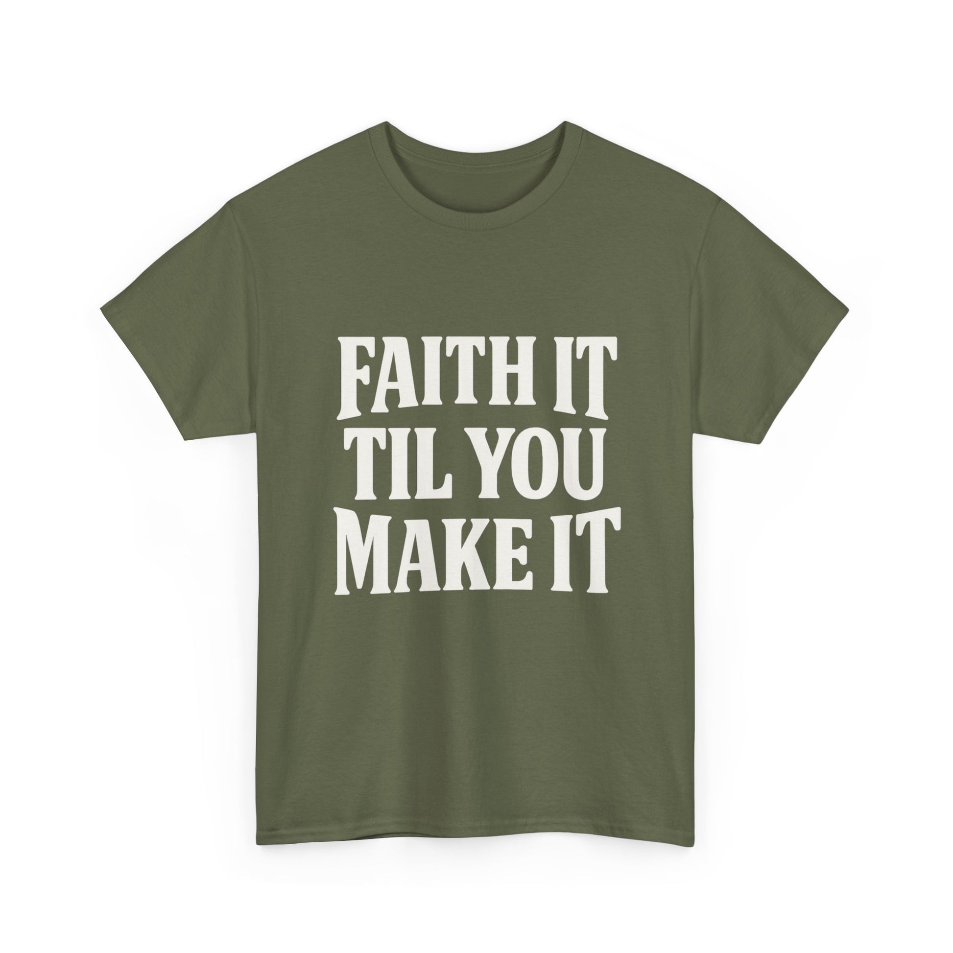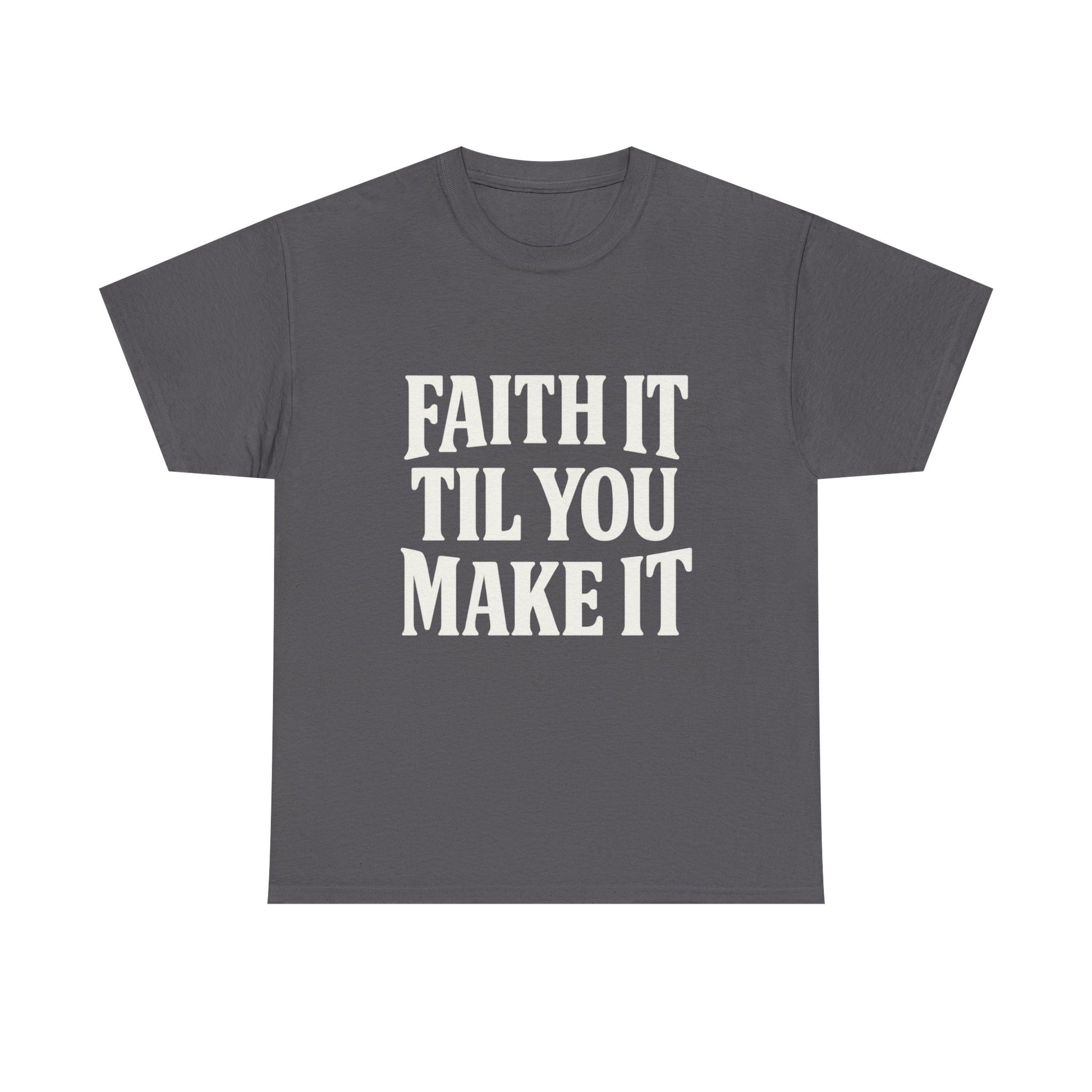 Faith It Til You Make It Unisex Heavy Cotton Tee, Inspirational T-Shirt, Motivational Gift, Self-Care Apparel, Everyday Wear