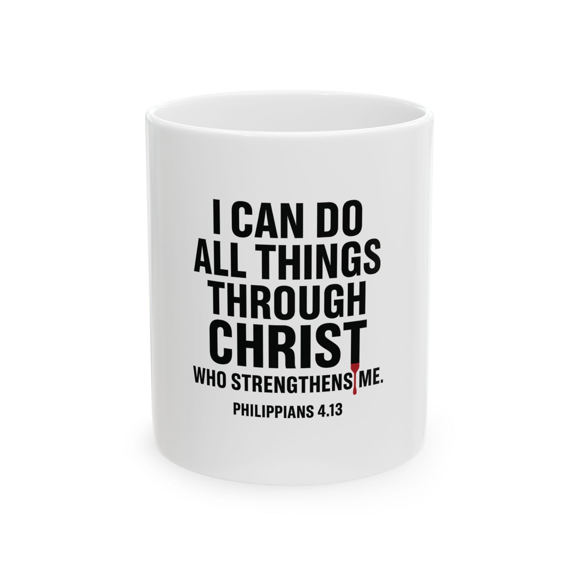 Featuring Philippians 4:13, this mug is more than just ceramic. It’s a declaration. The blood drop under “ME” serves as a visual anchor: you’re strengthened not by your own power, but through the One who paid the price.