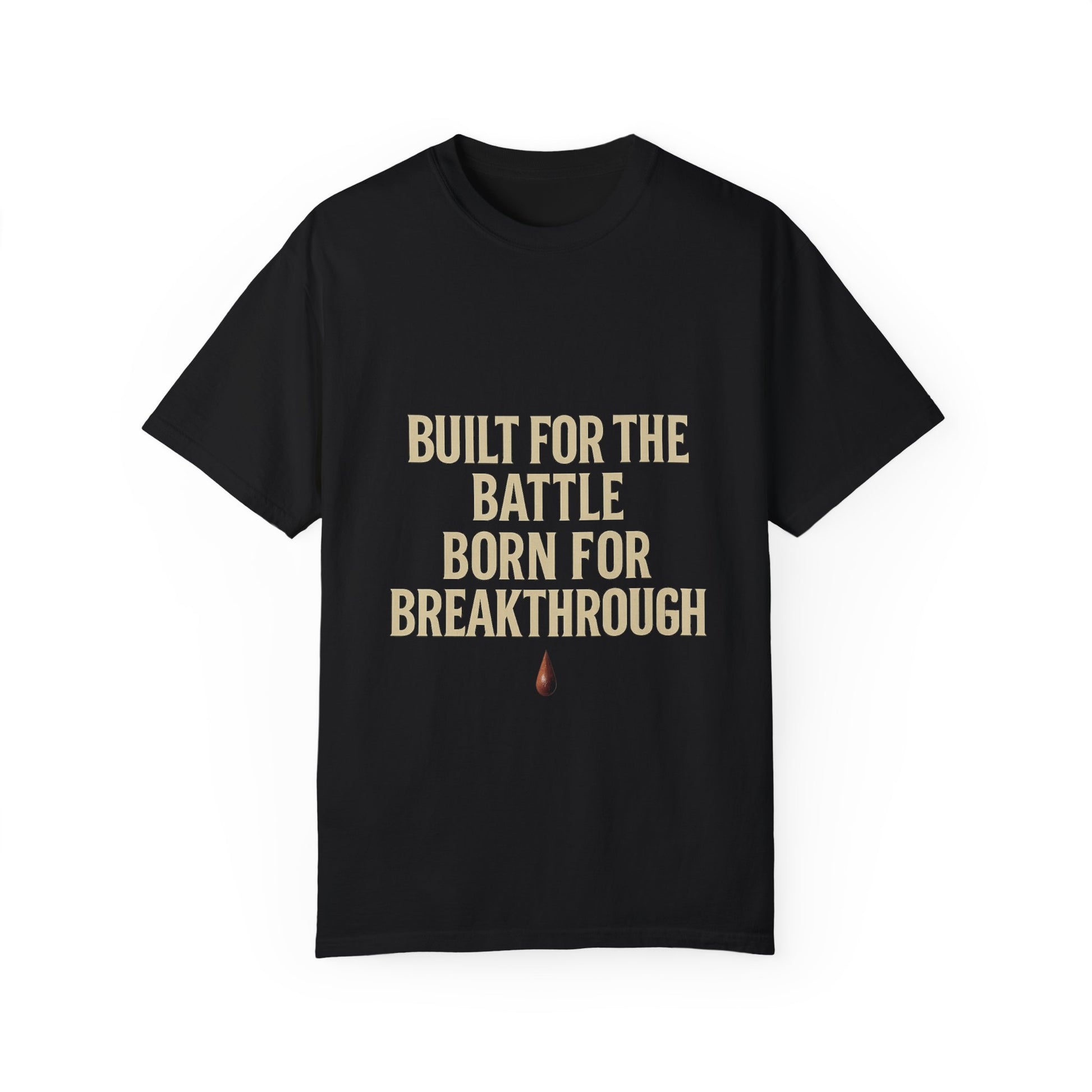 The Built for the Battle Tee was made for spiritual soldiers — the ones who’ve been tested, stretched, and refined by fire. With a clean layout and a single drop of crimson at the base, it’s a reminder that your struggle isn’t in vain — it’s birthing your breakthrough.